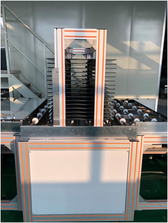 本裝置為太陽能電池生產(chǎn)線中工藝設(shè)備與工藝設(shè)備連接時的基板傳輸裝置。裝置采用西門子1200控制系統(tǒng)和伺服電機(jī)作傳輸動力,精密不銹鋼軸及POM傳輸輪+O型圈進(jìn)行滾輪方式輸送,并使用反射型光電傳感器識別傳輸基板,與上游連接信號對接,起點傳感器感應(yīng)到基板電機(jī)傳動,到達(dá)減速點減速,到達(dá)終點停止,未到達(dá)相應(yīng)位置報警,與下游連接信號對接,基板完全脫離終點傳感器電機(jī)停止轉(zhuǎn)動,下游有故障,自動停止報警。該傳輸機(jī)具備下游堵片或下游故障,上游來料自動存儲。 |