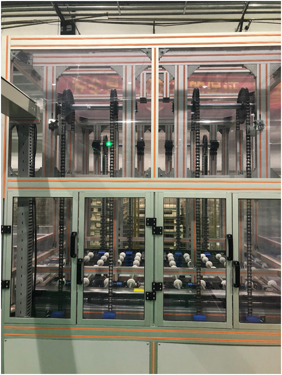 本裝置為太陽(yáng)能電池生產(chǎn)線中工藝設(shè)備與工藝設(shè)備連接時(shí)的基板傳輸裝置。裝置采用西門子1200控制系統(tǒng)和伺服電機(jī)作傳輸動(dòng)力,精密不銹鋼軸及POM傳輸輪+O型圈進(jìn)行滾輪方式輸送,并使用反射型光電傳感器識(shí)別傳輸基板,與上游連接信號(hào)對(duì)接,起點(diǎn)傳感器感應(yīng)到基板電機(jī)傳動(dòng),到達(dá)減速點(diǎn)減速,到達(dá)終點(diǎn)停止,未到達(dá)相應(yīng)位置報(bào)警,與下游連接信號(hào)對(duì)接,基板完全脫離終點(diǎn)傳感器電機(jī)停止轉(zhuǎn)動(dòng),下游有故障,自動(dòng)停止報(bào)警。該傳輸機(jī)具備下游堵片或下游故障,上游來(lái)料自動(dòng)存儲(chǔ)和先進(jìn)先出存儲(chǔ)。 |