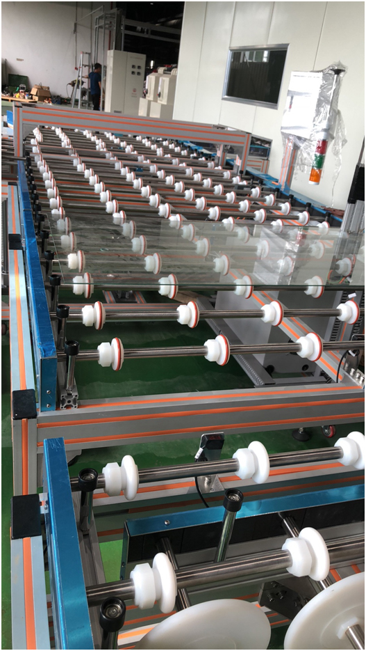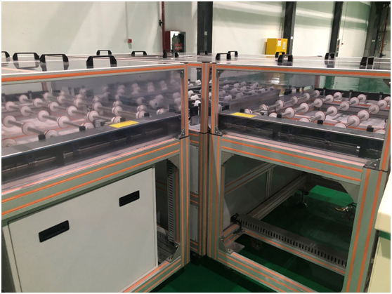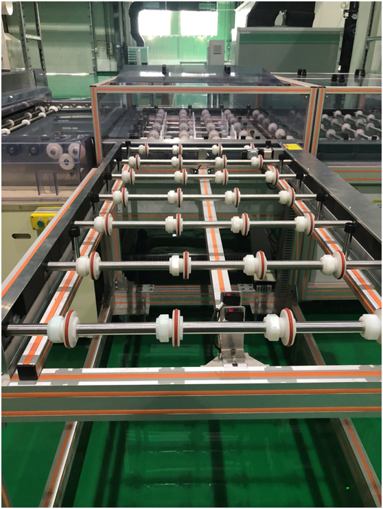 薄膜太陽能電池設(shè)備按照制程主要分為前段和后段兩部分。前段工序是電池基板制造過程,包括打標、清洗、濺射、刻劃、老化、測試等工藝設(shè)備。后段工序是電池模組封裝過程,包括層壓、接線盒組裝、焊線等工藝設(shè)備。為了將這些工藝設(shè)備連接成為全自動生產(chǎn)線,需要橫向傳輸、縱向傳輸、轉(zhuǎn)角傳輸、交叉?zhèn)鬏、先進后出堆棧、先進先出堆棧緩存等傳輸機。 |