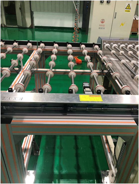 本裝置為太陽能電池生產(chǎn)線中工藝設(shè)備與工藝設(shè)備連接時的基板傳輸裝置。裝置采用西門子1200控制系統(tǒng)和伺服電機作傳輸動力,精密不銹鋼軸及POM傳輸輪+O型圈進行滾輪方式輸送,并使用反射型光電傳感器識別傳輸基板,與上游連接信號對接,起點傳感器感應(yīng)到基板電機傳動,到達減速點減速,到達終點停止,未到達相應(yīng)位置報警,與下游連接信號對接,基板完全脫離終點傳感器電機停止轉(zhuǎn)動,下游有故障,自動停止報警。該傳輸機具備維修和輕便物料進出。 |